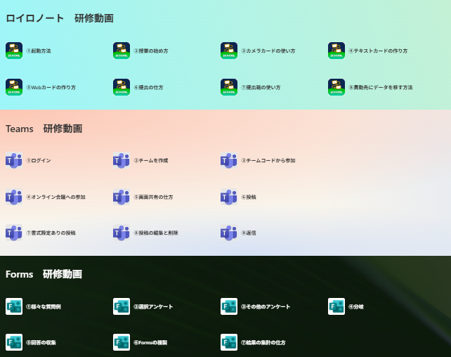 これらの簡単な操作マニュアルを2~3分の動画でまとめています。