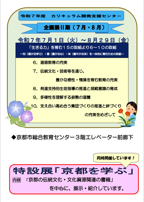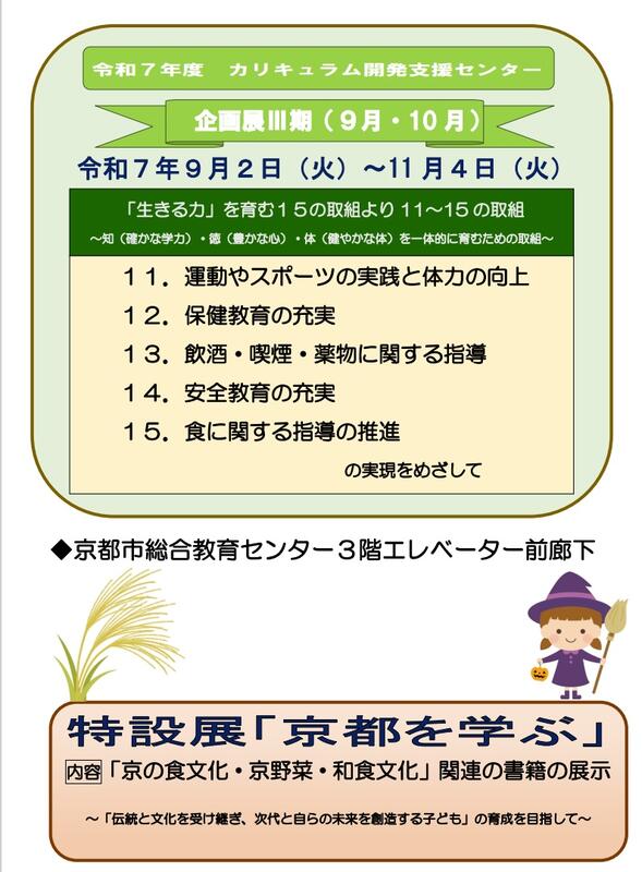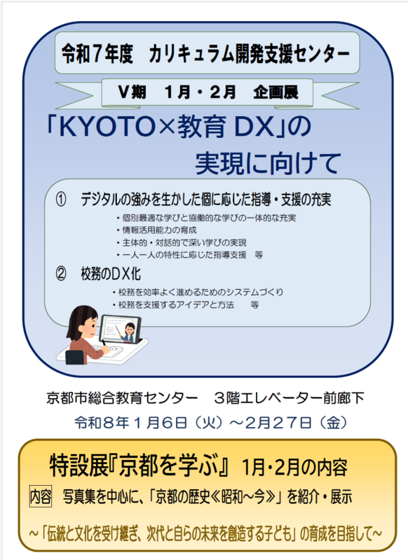 総合教育センターへおいでの折には、是非、カリキュラム開発支援センターにお立ち寄りいただき、学校園現場における充実した教育実践を進めるためにご活用ください。